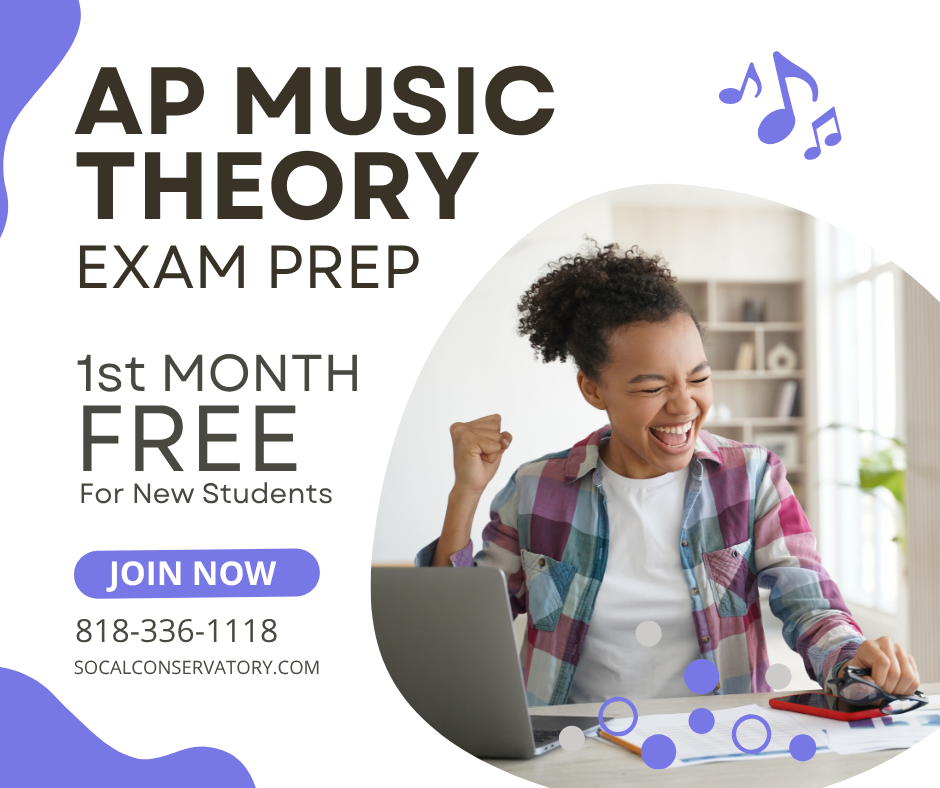 “The AP Music Theory Exam Prep not only prepared me for the exam, on which I received a 5, but also prepared me to be a musician in the real world. It is unfathomable how much knowledge was taught in that one class. It definitely prepared me to go to NYU, and major in Musical Theater. Thank you So Cal Conservatory of Music for giving me my foundation and musical roots.”