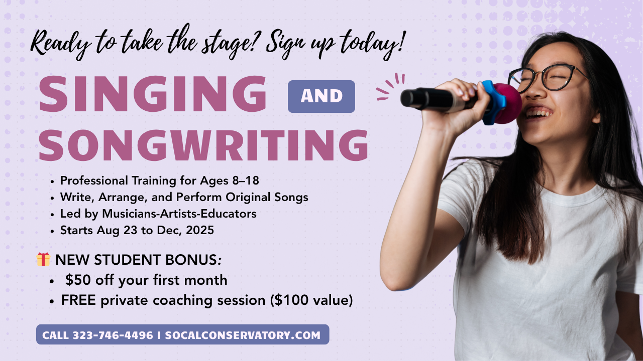 Led by professional artists and educators, this program blends vocal technique, songwriting, and real-world music skills—giving students the tools to express themselves and shine on stage.